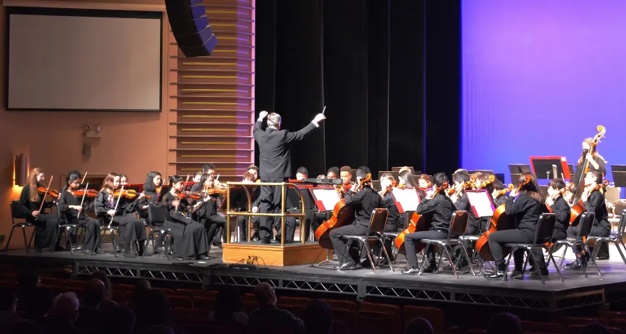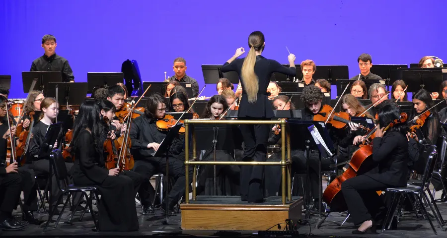 String Orchestra provides fundamental ensemble experience to string students. Students learn what it’s like to play in an orchestra and become part of a team. They will learn key skills such as rhythm, intonation, sound production, bow technique, and key signatures. String Orchestra is conducted by Carrie Mascaro.