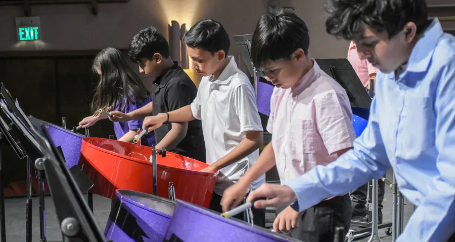 Steel Pan was added to GCTYO offerings in Spring 2021. It is intended as a gateway to the benefits of high-quality music education that GCTYO provides. Steel Pan is a non-audition, no experience necessary, ensemble. It is open to students of all ages who want to learn different musical genres and skills. GCTYO offers three different levels of Steel Pan for beginner, intermediate, and advanced players. Steel Pan is conducted by expert pannist and educator Jim Royle.