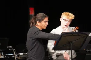 At the Fall 2023 concert, Principal Orchestra performed the world premiere of “Desierto,” the first movement of a three part symphonic poem entitled “Suite Inmigrante” for orchestra, mixed choir, and children’s choir, composed by Luis Villalobos. The piece was performed with the Grammy award winning Villalobos Brothers and INTEMPO Youth Choir.